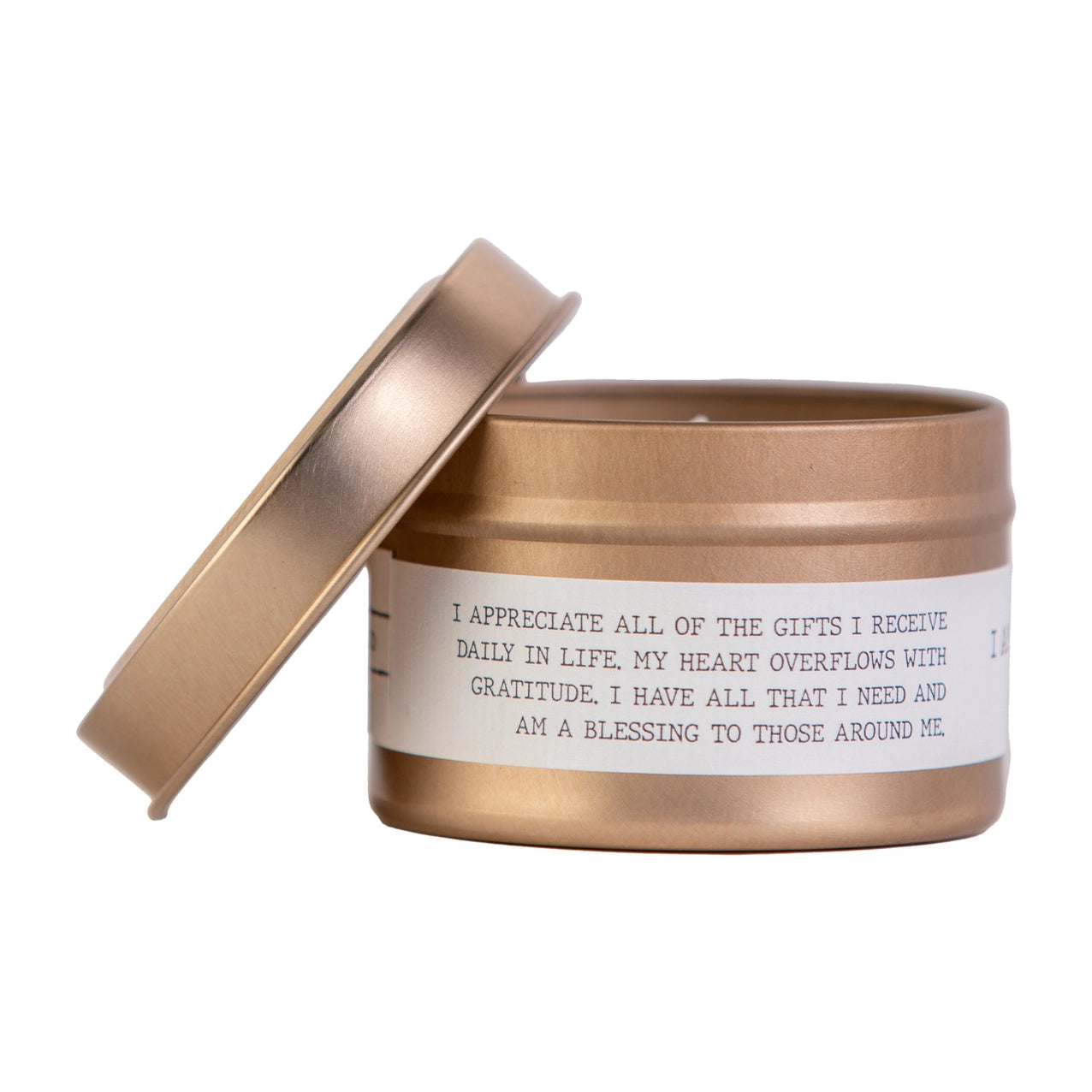 I Am Blessed Travel Tin. Light a candle and count your blessings with vibrant notes of bamboo, coconut & green florals. This 4 oz travel tin, made with soy blend wax and clean-burning cotton wicks, was lovingly handcrafted by survivors of human trafficking at Freedom Studios. Every candle carries a story of hope, healing, and new beginnings, a small light that helps restore lives.