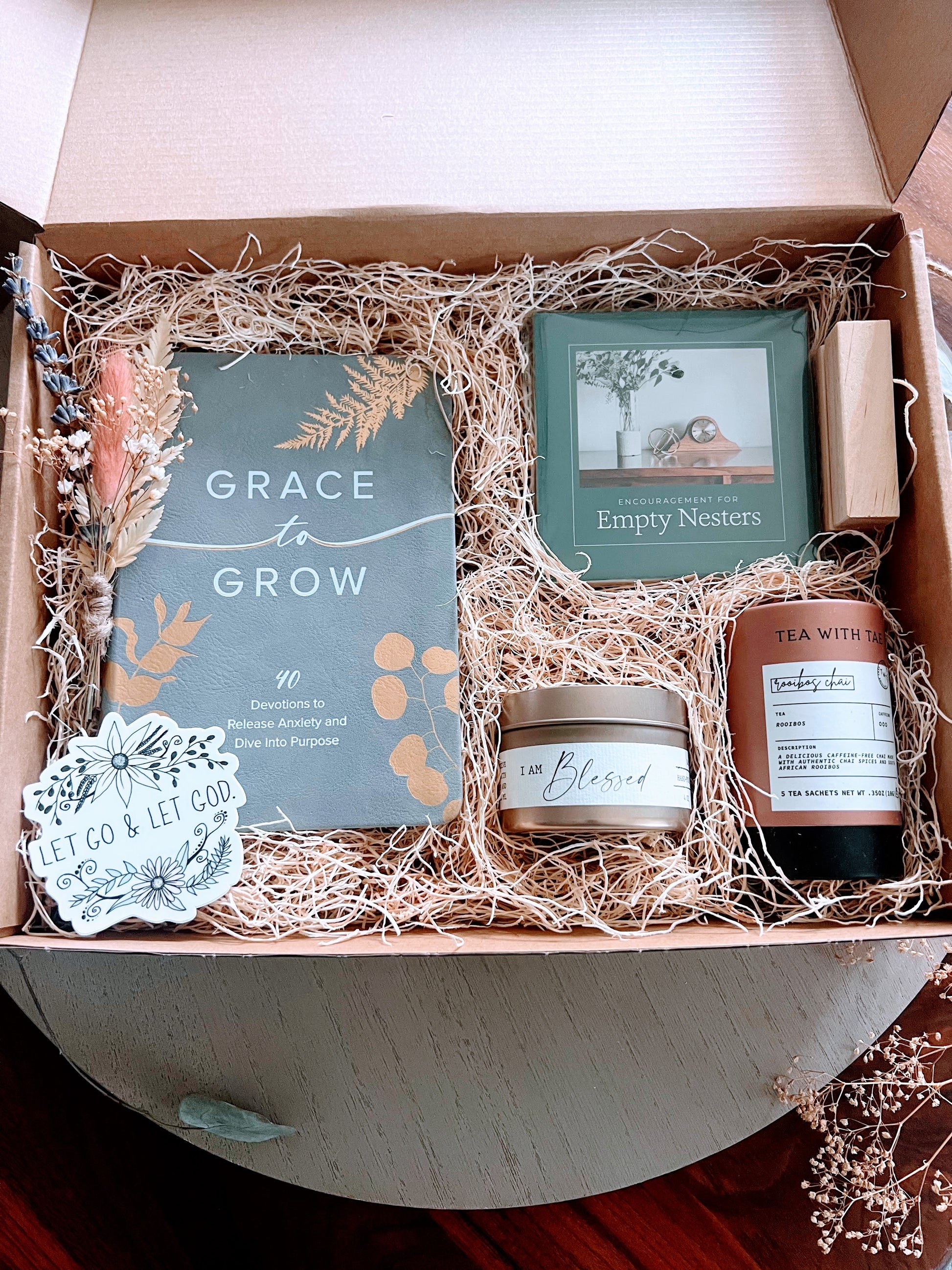 Stepping into the empty nest season is both beautiful and bittersweet. This thoughtfully curated gift box is designed to bring encouragement, prayer, and hope to moms as they embrace this new chapter of life. Each item offers gentle reminders of God’s presence, peace, and guidance, helping moms rest in His promises while adjusting to a quieter home.