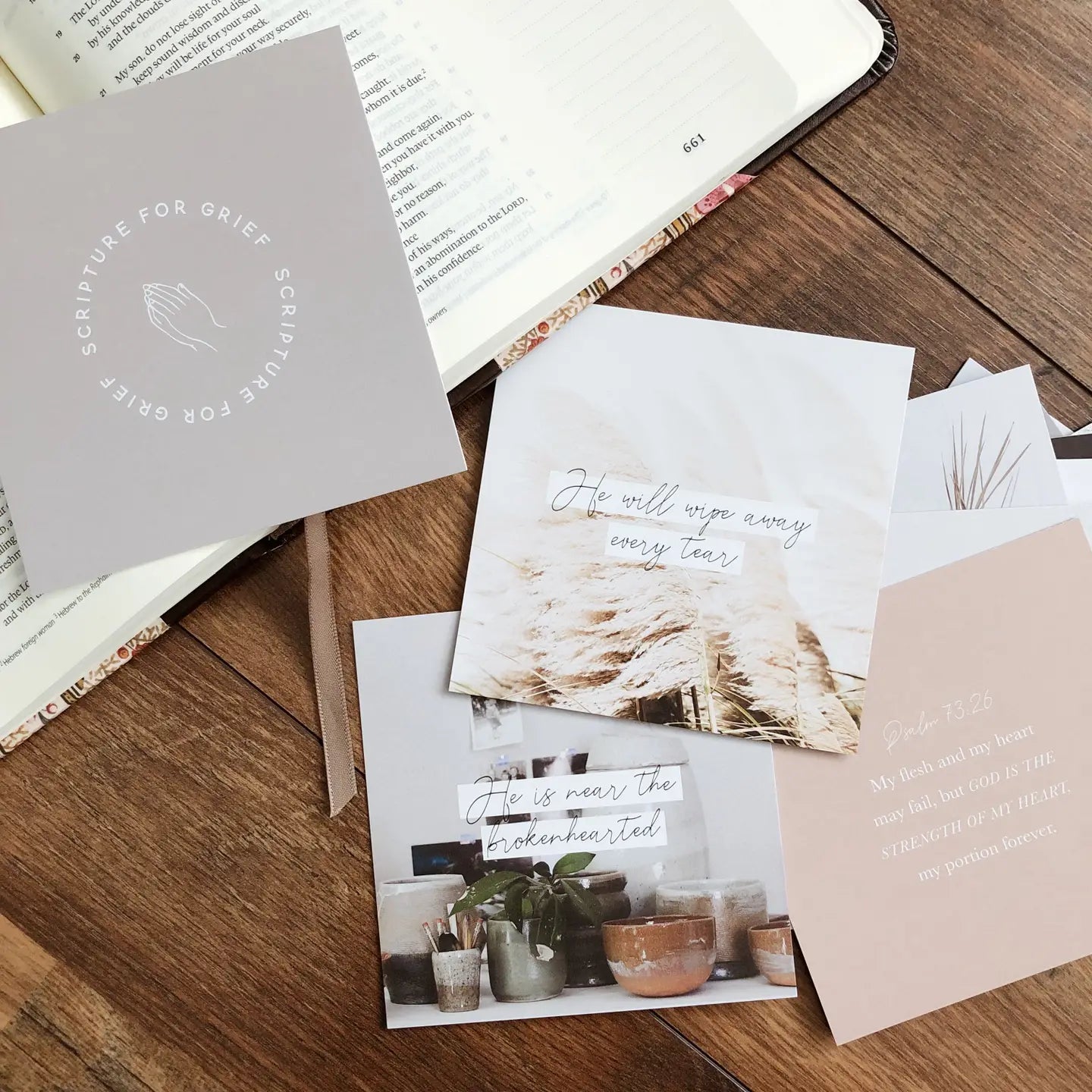 Scripture For Grief Verse Card Set and wood holder. This set of verse cards includes verses to bring comfort during grief.