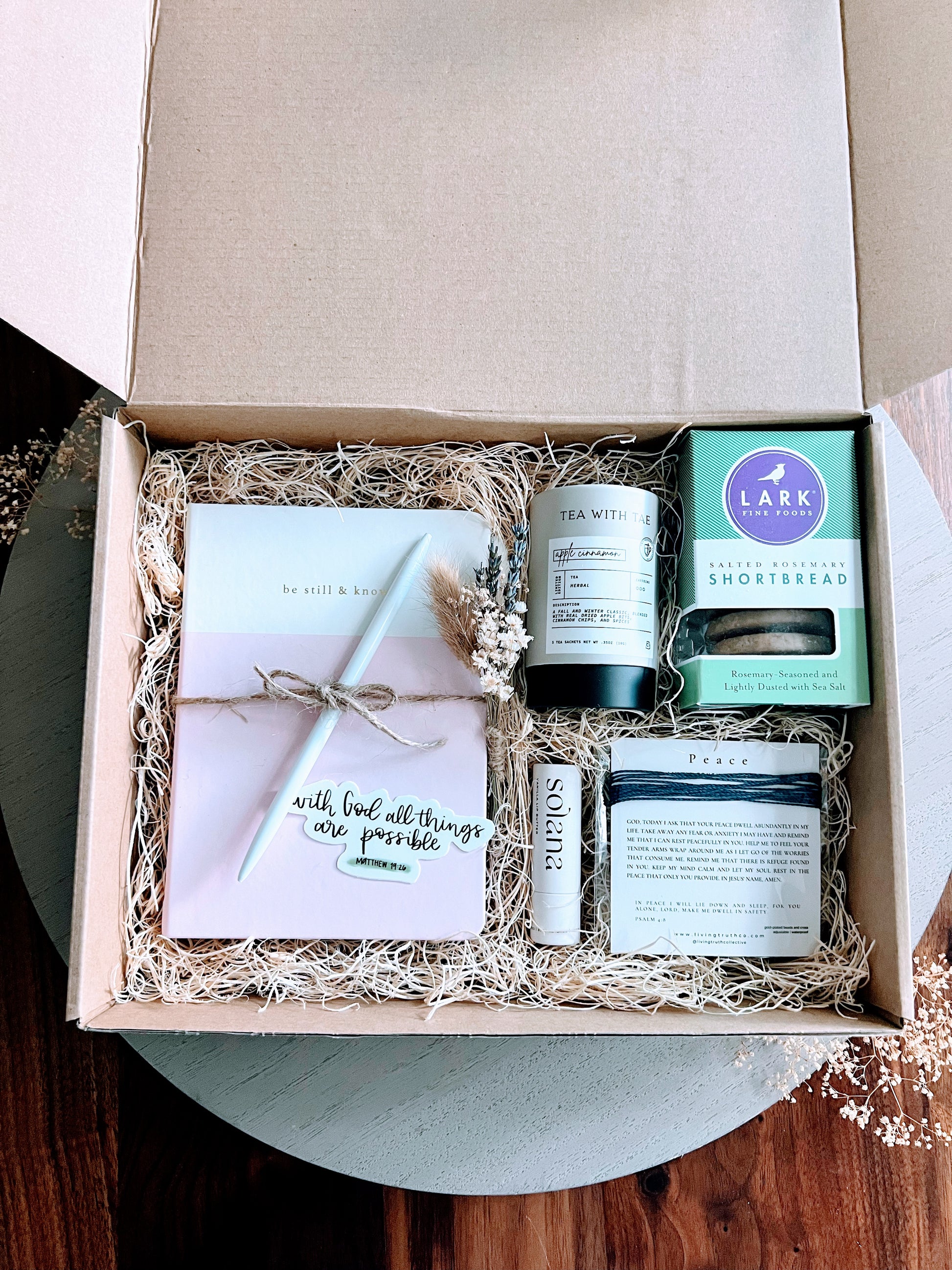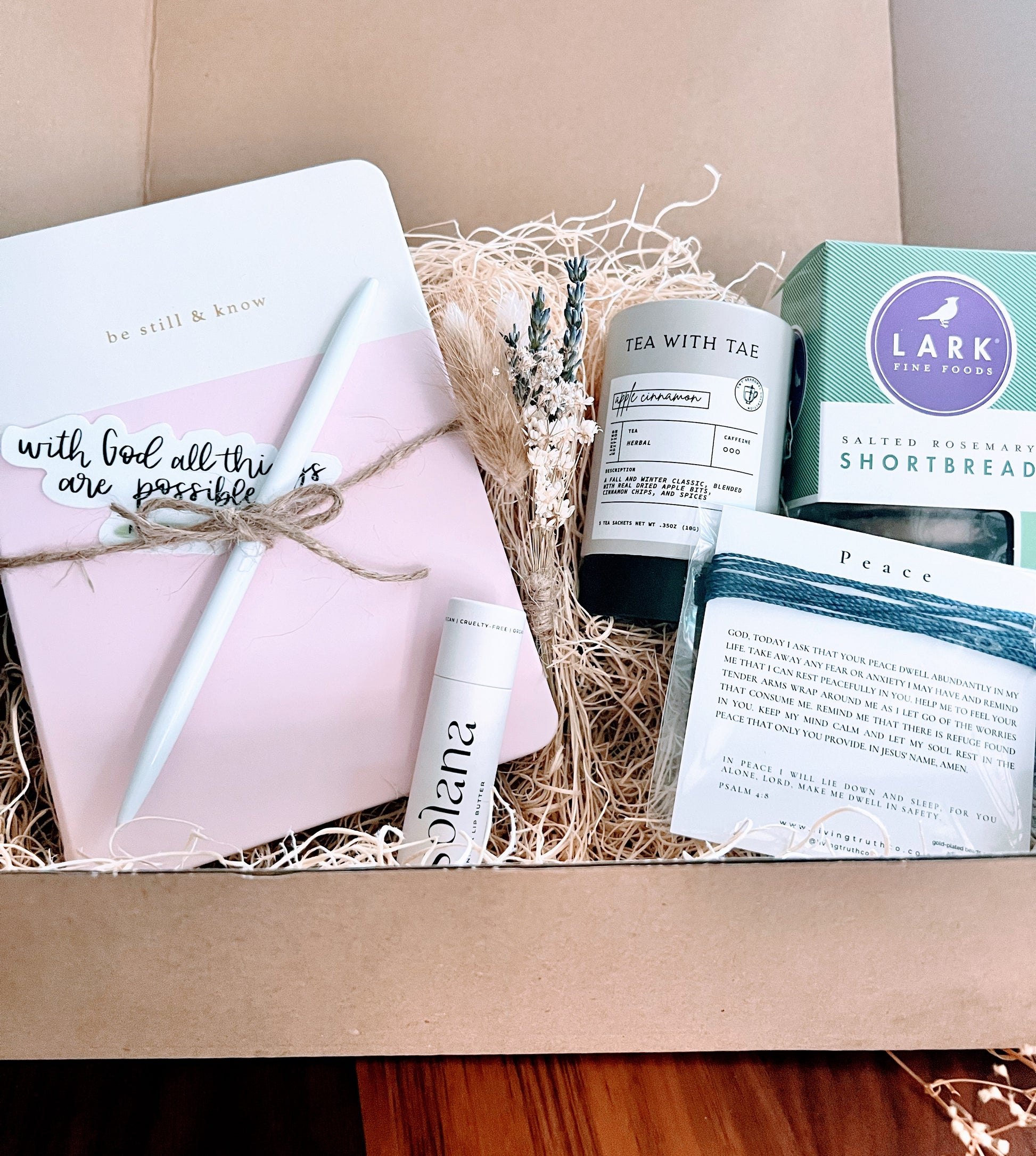 A simple yet beautifully designed box to uplift spirits and encourage your loved one to draw closer to God. It offers a chance to relax, reflect, write down thoughts, and take care of herself.