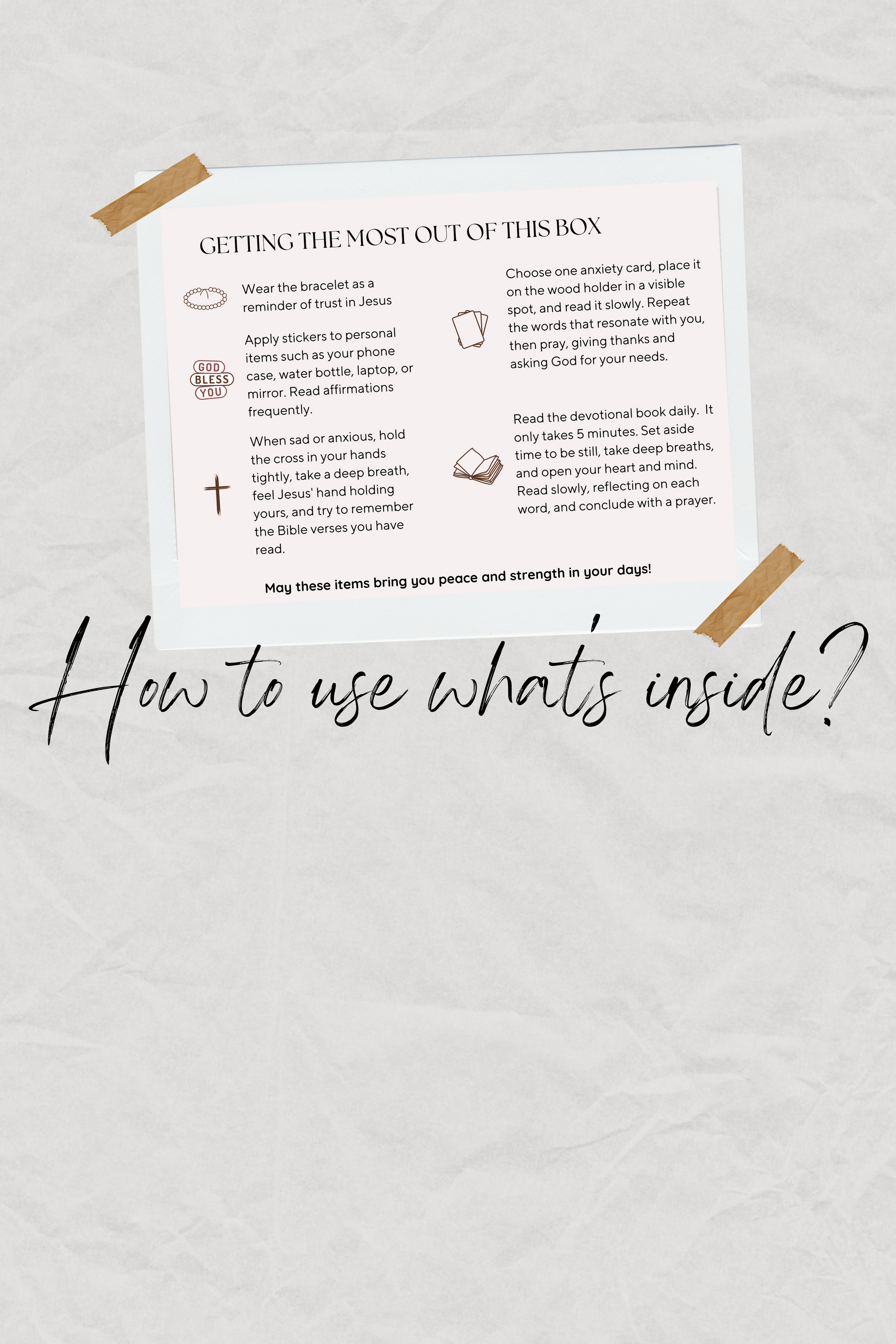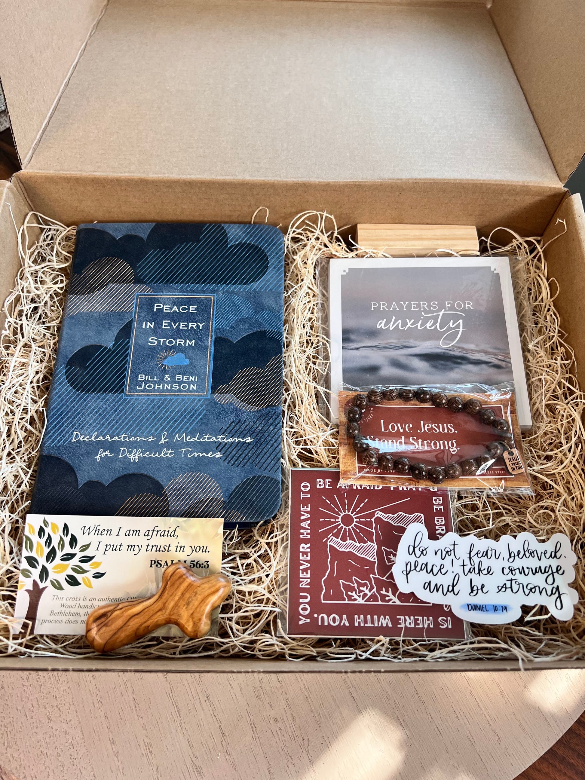 This gift box brings hope and comfort for men facing tough times, offering peace and spiritual growth through God's scripture. This curated collection is designed to help you or your loved one navigate anxiety and fears. Ideal for those facing illness, divorce, unemployment, or other challenging circumstances.