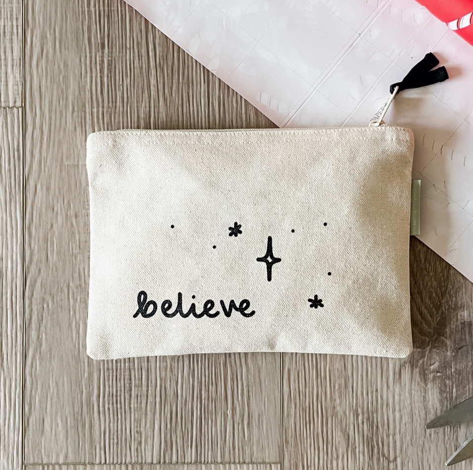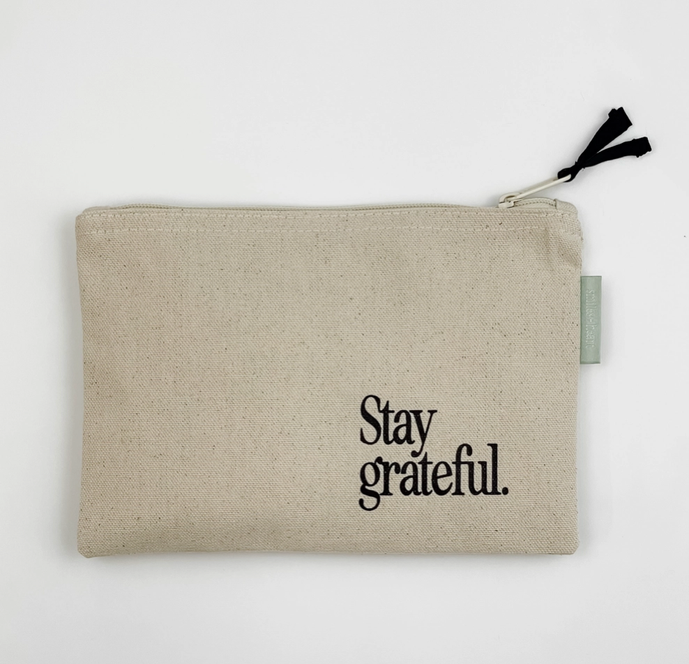 Zipper Pouch: Beige Canvas pouch with matching zipper. Size: 6 1/4" x 8 1/2" Care: Machine Wash, Cold With Like Colors; Do Not Bleach; Warm Iron; Tumble Dry, Low.