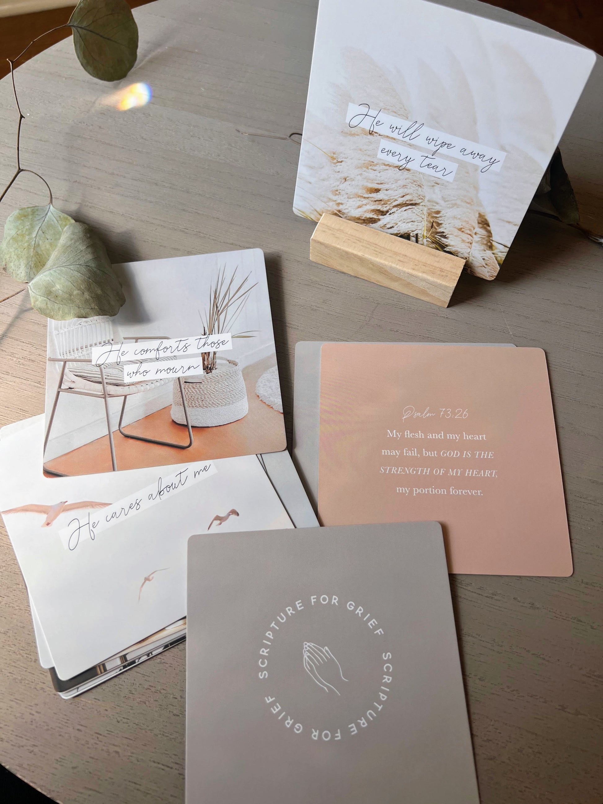 Scripture For Grief Verse Card Set and wood holder. This set of verse cards includes verses to bring comfort during grief.